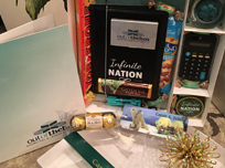 Gift Box & Promotional Items custom imprinted with Company Logo. Plus up to 2 pounds of quality treats.